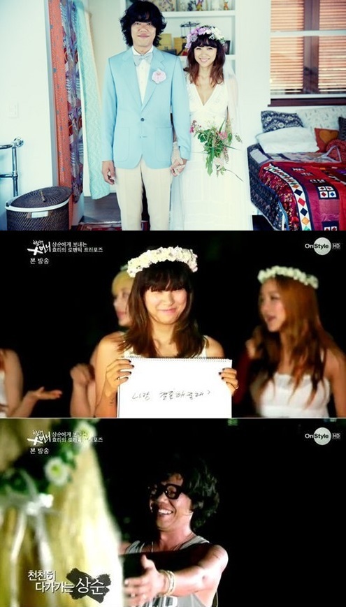 결혼식에 앞서 이효리가 이상순에게 프러포즈에 화답한 모습 또한 예쁘고 아기자기한 모습으로 관심을 받았다. 이효리는 지난 3일 방송된 온스타일 ‘이효리의 X 언니’에서 이상순에게 스케치북 프러포즈를 하며 마음을 표현했다. 그는 '효리의 마음'이라고 시작한 스케치북에서 '오빠 깜짝 놀랐지?', '이런 거 부끄럽지만 한 번 해볼게', '처음 같이 올려다보던 저 달빛 기억나?', '나중에 제주에서 결혼하자 했던 약속 기억나?', '그 약속 지킬 수 있게 해줄거지?', '나랑 결혼해줄래?'라는 글과 함께 'YES라면 Kiss Me'라는 글로 마음을 고백했다.