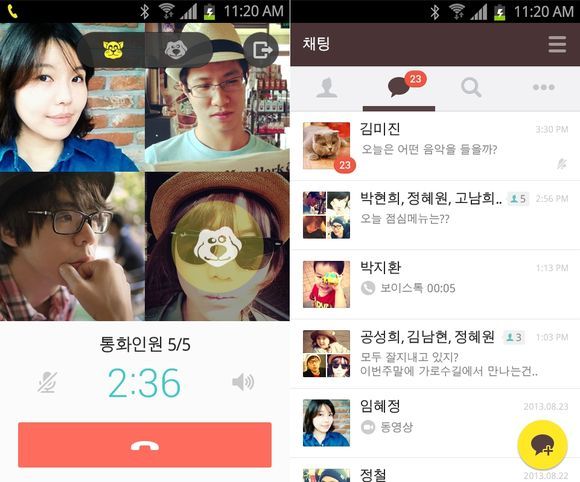 이 외 그룹채팅방 프로필 사진도 업그레이드됐다. 3인이상의 그룹채팅방에 참여하고 있는 멤버들의 프로필 사진이 최대 4개까지 타일 형식으로 보여진다. 또한 스마트폰 화면을 좌우로 밀기만 해도 ‘친구’, ‘채팅’, ‘친구찾기’, ‘더보기’와 같은 주요 페이지 이동이 가능해졌다.