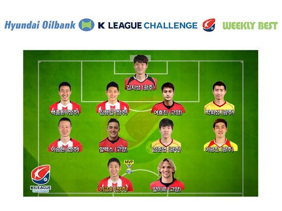 공격수 부문에는 이근호와 함께 1도움을 올린 고양의 외국인 선수 알미르(득점력 뿐 아니라 넓은 시야와 도움 능력을 겸비한 팀 공격의 핵심)가 이름을 올렸다.