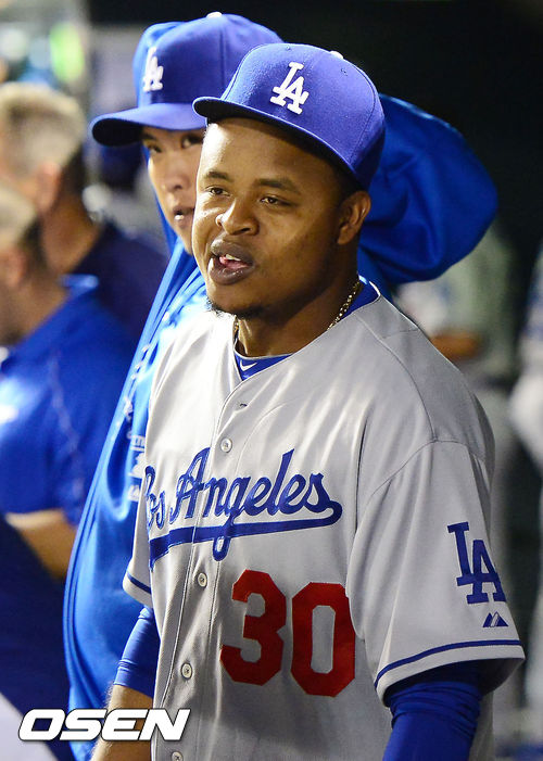 9회말 다저스 이적 후 첫 선발이 예정된 에디슨 볼케스가ㅓ 류현진 옆에서 간식을 먹고 있다. / rumi@osen.co.kr