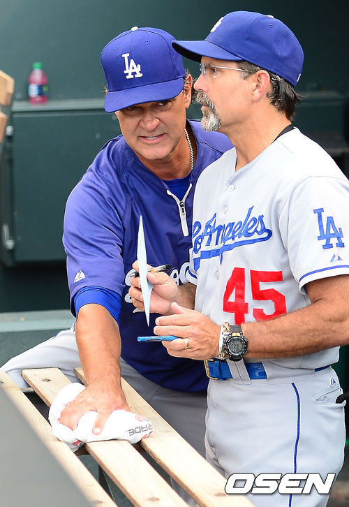 돈 매팅리 감독이 덕 아웃의 상을 걸레로 닦고 있다. / rumi@osen.co.kr
