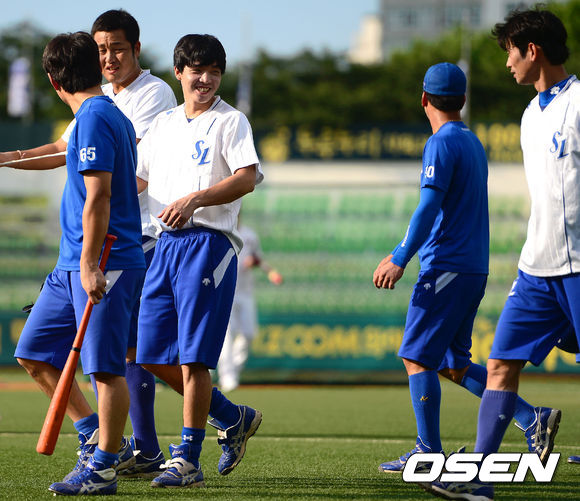 4일 오후 대구구장에서 열린 '2013 한국야쿠르트 세븐 프로야구' 삼성 라이온즈와 KIA 타이거즈의 경기에 앞서 삼성 정형식이 훈련을 마치고 더그아웃으로 들어가고 있다
