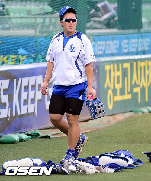 4일 오후 대구구장에서 열린 '2013 한국야쿠르트 세븐 프로야구' 삼성 라이온즈와 KIA 타이거즈의 경기에 앞서 삼성 최형우가 훈련을 마치고 더그아웃으로 들어가고 있다