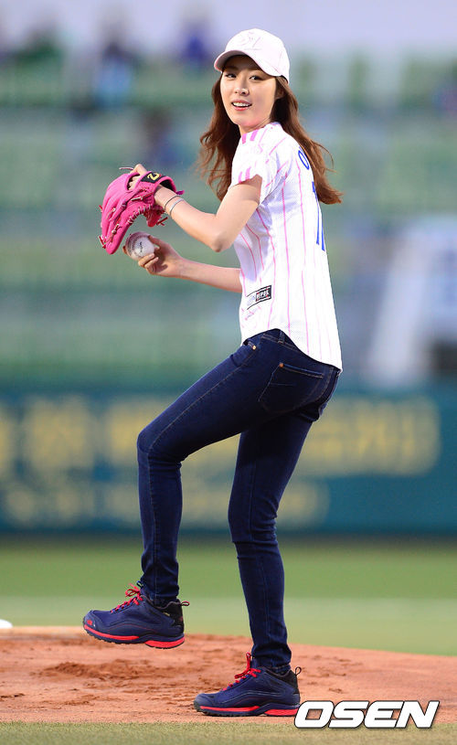 4일 오후 대구구장에서 열린 '2013 한국야쿠르트 세븐 프로야구' 삼성 라이온즈와 KIA 타이거즈의 경기에 앞서 배우 이연희가 시구를 하고 있다.