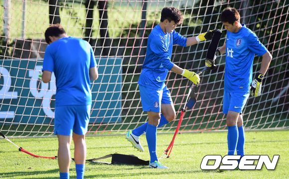 골키퍼 정성룡, 김승규, 김진현이 훈련을 하고 있다.