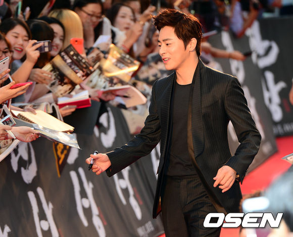 4일 오후 서울 용산 아이파크몰 광장에서 열린 영화 '관상' 레드카펫 행사에서 조정석이 팬들에게 사인을 해주고 있다.