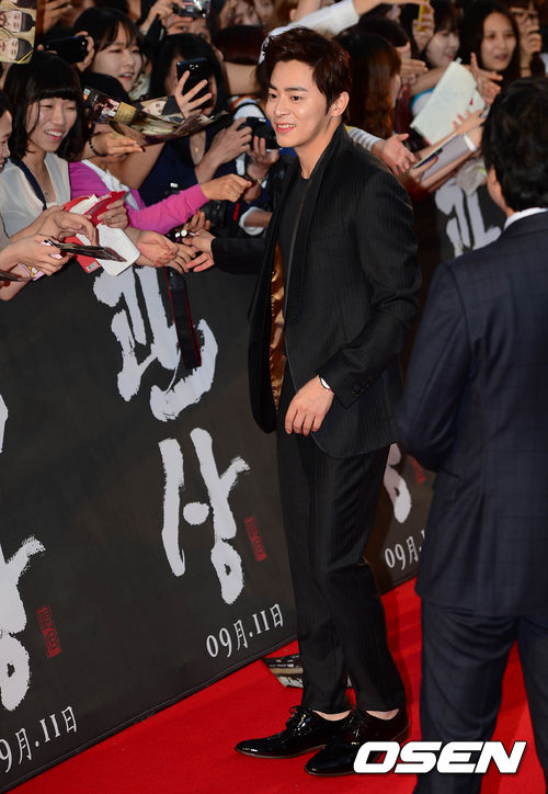 4일 오후 서울 용산 아이파크몰 광장에서 열린 영화 '관상' 레드카펫 행사에서 조정석이 팬들에게 사인을 해주고 있다.