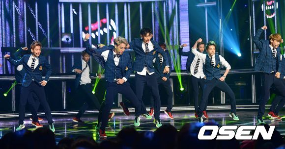그룹 EXO가 4일 오후 서울 광장동 유니클로 악스홀에서 진행된 MBC MUSIC '쇼 챔피언' 무대에 올라 멋진 공연을 선보이고 있다.