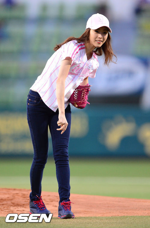 4일 오후 대구구장에서 열린 '2013 한국야쿠르트 세븐 프로야구' 삼성 라이온즈와 KIA 타이거즈의 경기에 앞서 배우 이연희가 시구를 마치고 미소 짓고 있다