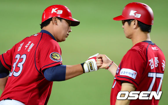 4일 오후 대구구장에서 열린 '2013 한국야쿠르트 세븐 프로야구' 삼성 라이온즈와 KIA 타이거즈의 경기, 6회초 2사 KIA 김주형이 솔로홈런을 날린후 김종국 코치와 하이파이브를 하고 있다