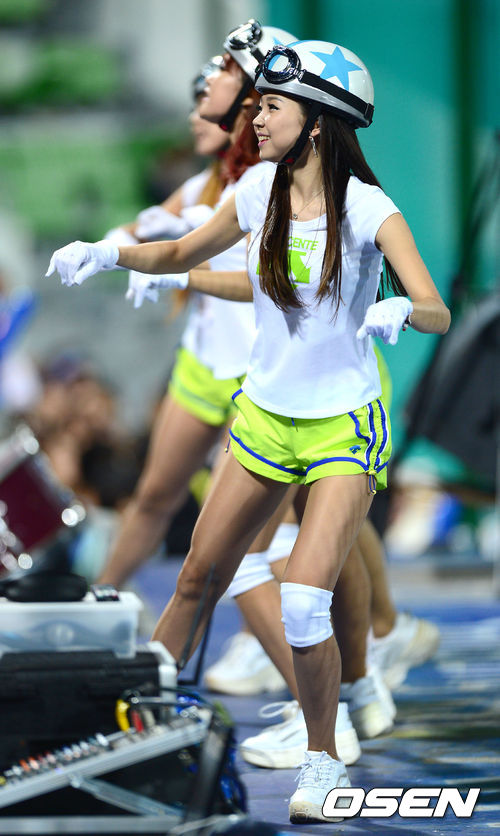 4일 오후 대구구장에서 열린 '2013 한국야쿠르트 세븐 프로야구' 삼성 라이온즈와 KIA 타이거즈의 경기, 삼성 치어리더가 멋진 공연을 펼치고 있다