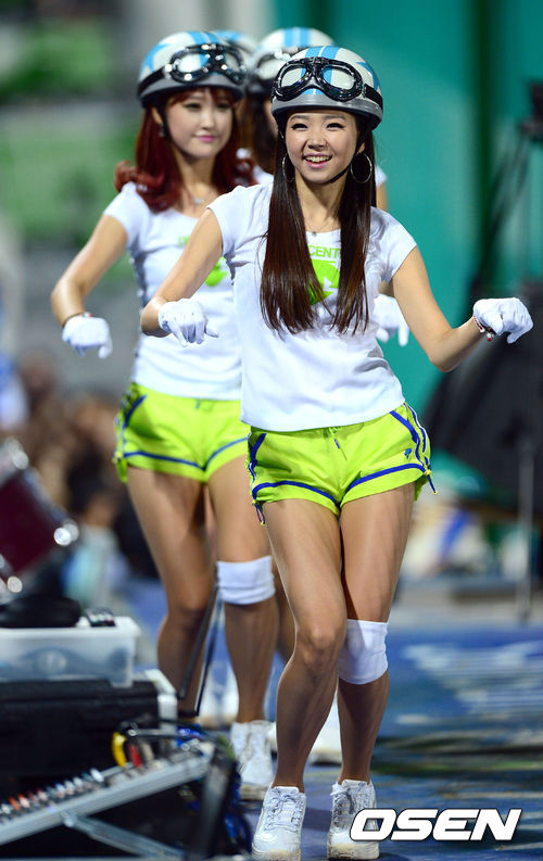 4일 오후 대구구장에서 열린 '2013 한국야쿠르트 세븐 프로야구' 삼성 라이온즈와 KIA 타이거즈의 경기, 삼성 치어리더가 멋진 공연을 펼치고 있다