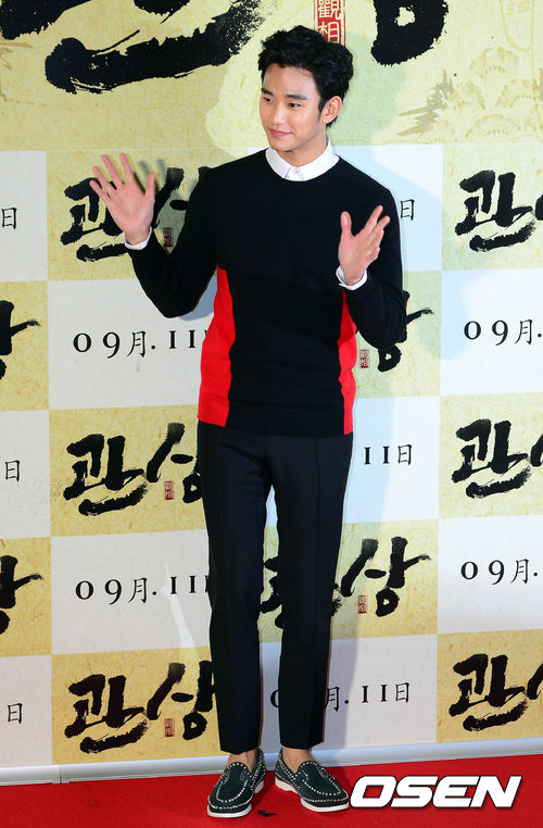 4일 오후 서울 용산 CGV에서 열린 영화 '관상' VIP 시사회에 참석한 김수현이 포토타임을 갖고 있다.