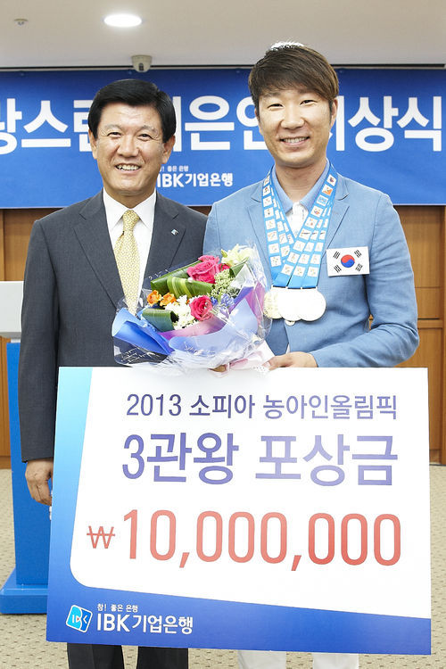 최수근(30, IBK기업은행)이 2013 소피아 농아인 올림픽 3관왕을 기록하며 소속팀에서 받은 포상금 1000만 원을 모교인 경남대학교에 기부했다.