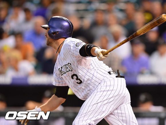 5일 (이하 한국시간) 미국 콜로라도주 덴버 쿠어스 필드에서 열린 2013 메이저리그 콜로라도 로키스와 LA 다저스의 경기, 1회말 1사 주자 2,3루 콜로라도 커다이어가 우익수 희생플라이로 1타점을 올리며 역전을 시키고 있다.
