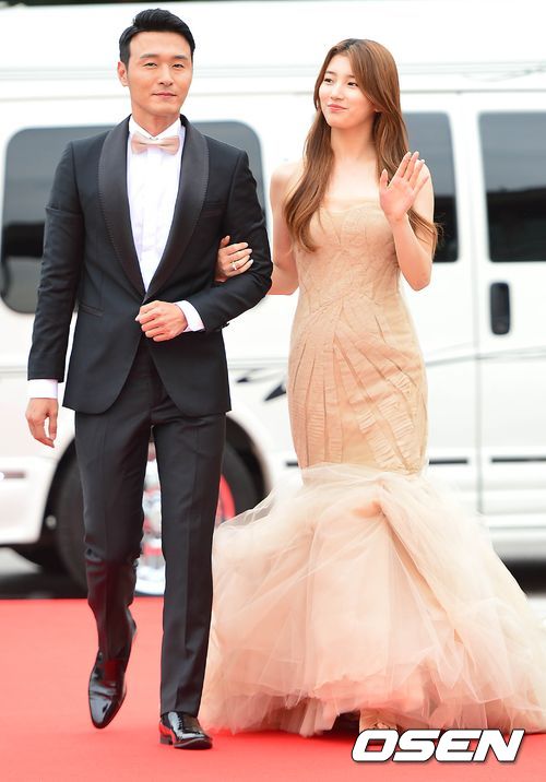 배우 이성재와 수지가 레드 카펫을 밟고 있다.