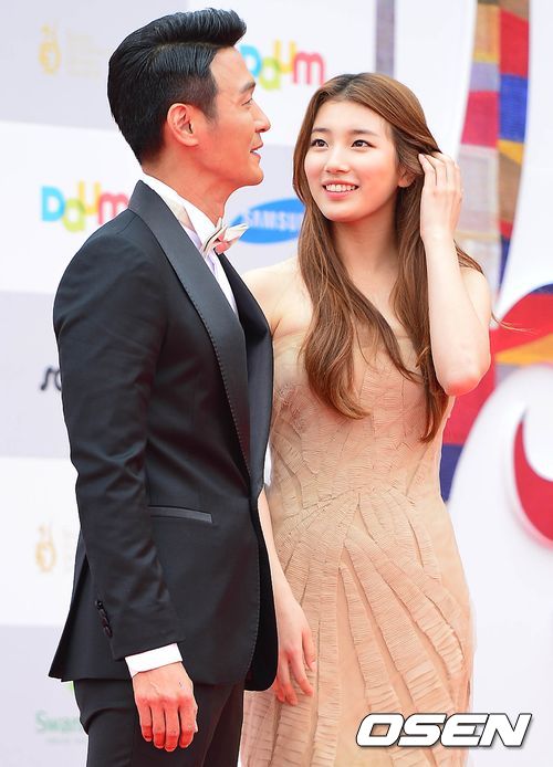 배우 이성재와 수지가 포토타임을 갖고 있다.