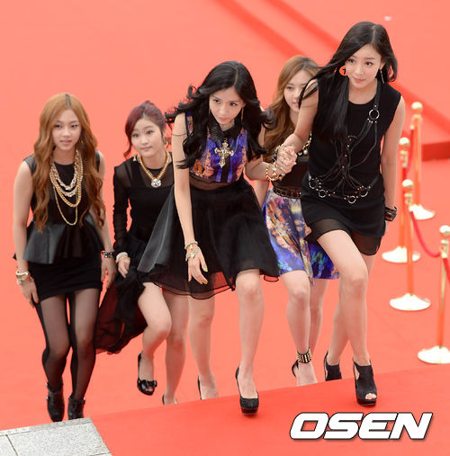 걸그룹 투아이즈가 레드 카펫을 밟고 있다.