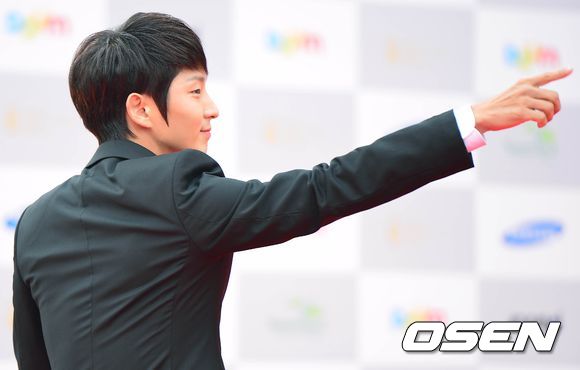 배우 이준기가 레드카펫을 밟으며 팬들을 향해 인사하고 있다.