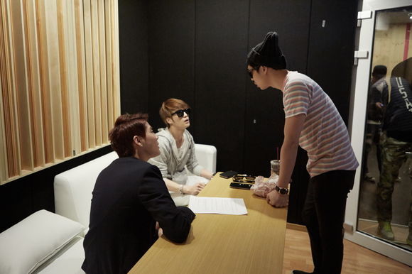 공개된 사진에서는 JYJ 멤버들이 2014인천아시안게임 홍보대사로서 진지하게 곡에 대해 논의하고 있는 모습과 셋이 함께 장난끼 어린 포즈를 취하는 장면도 볼 수 있어, 훈훈한 녹음 현장을 느낄 수 있었다.