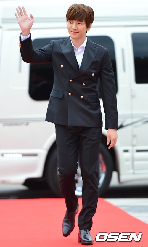 그룹 2PM 준호가 레드카펫을 밟고 있다.