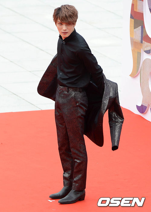 JYJ 김재중이 사회자의 요청에 재킷을 벗고 있다.