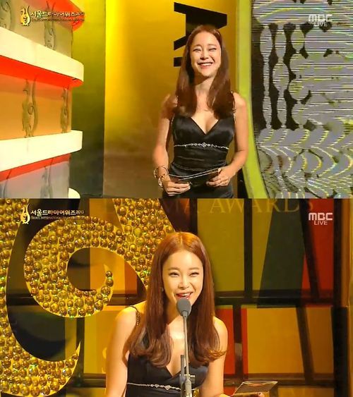 백지영은 "오랜만에 화려한 모습으로 나오니 반가움이 배가되는 것 같다"며 "이 자리에서 드라마 '시크릿 가든'의 '그 여자'로 수상했는데 시상해서 영광이다"고 소감을 전했다.