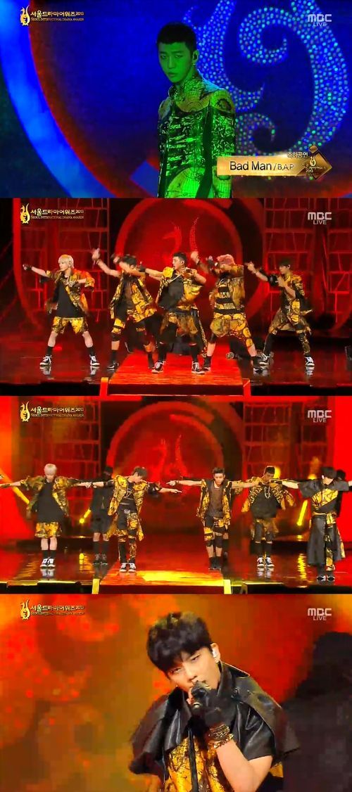 B.A.P는 5일 서울 장충동 국립극장에서 열린 제8회 '2013 서울드라마어워즈'에서 '배드 맨' 무대를 선보였다.