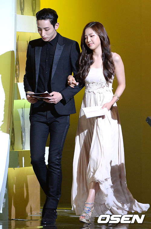 배우 이수혁이 에이핑크 손나은과 무대로 입장하고 있다.