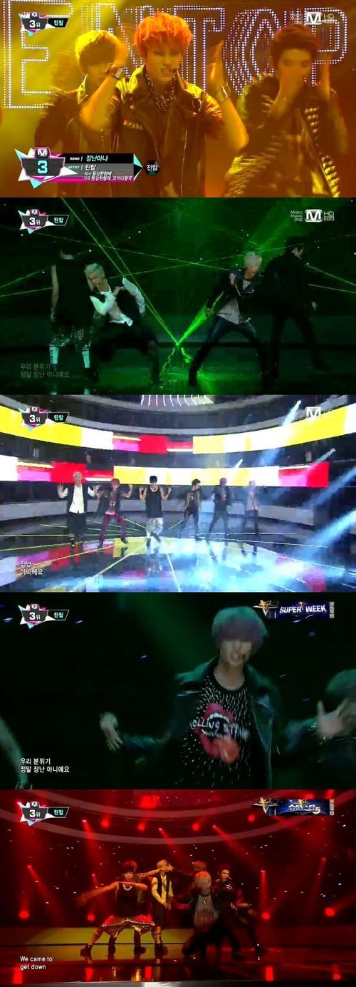 틴탑은 5일 오후 방송된 엠넷 '엠카운트다운'(이하 '엠카')에서 신곡 '장난아냐'의 무대를 선보였다.