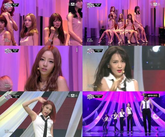 카라는 5일 오후 방송된 엠넷 '엠카운트다운'(이하 '엠카')에서 '둘 중에 하나', '숙녀가 못 돼'의 첫 방송무대를 공개했다.