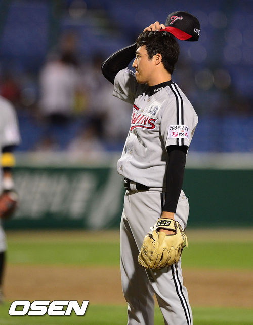 5일 오후 대전구장에서 열린 '2013 한국야쿠르트 세븐 프로야구' 한화 이글스와 LG트윈스의 경기, 3회말 무사 1루 한화 고동진에게 몸에 맞는 공으로 출루시킨 LG 선발투수 신정락이 아쉬워하고 있다