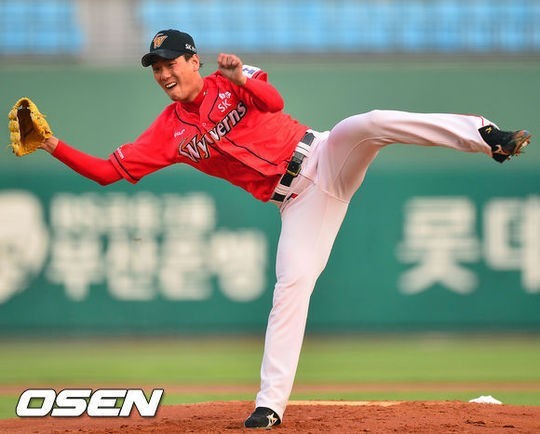 김광현은 2회와 3회 6명의 타자를 연속범타 처리하며 안정적인 모습을 보여줬다. 그러나 4회 선두타자 전준우에게 볼넷을 내준 뒤 1사 후 강민호에게 던진 145km 직구가 높게 몰려 투런포를 허용하고 말았다. 4-3까지 쫓기게 된 김광현이다.
