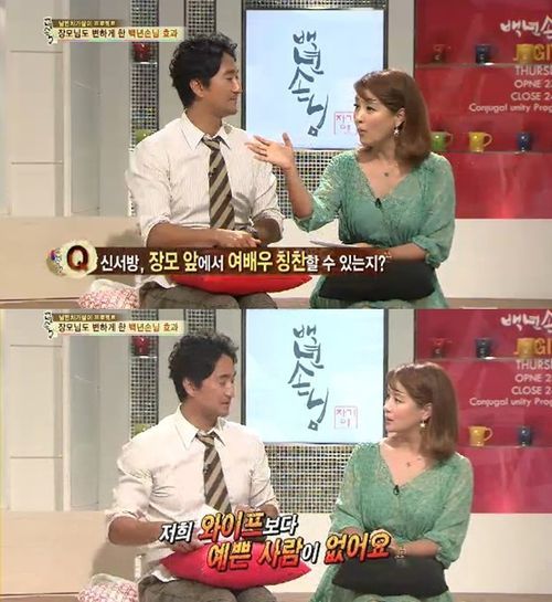 이후 김원희가 “신서방은 장모 앞에서 여배우의 칭찬을 할 수 있겠냐”고 질문하자, 신현준은 “우리 아내보다 예쁜 사람은 없다”고 답하며 애정을 과시했다.