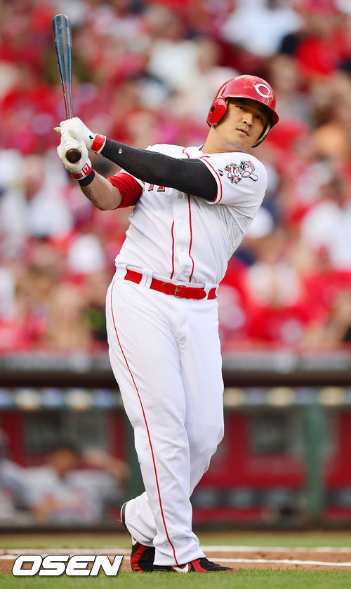 6일 (이하 한국시간) 미국 오하이오주 신시내티 그레이트 아메리칸 볼파크에서 열린 2013 메이저리그 신시내티 레즈와 세인트루이스 카디널스의 경기, 1회초 선두타자 추신수가 타석에 오르며 스윙을 하고 있다.