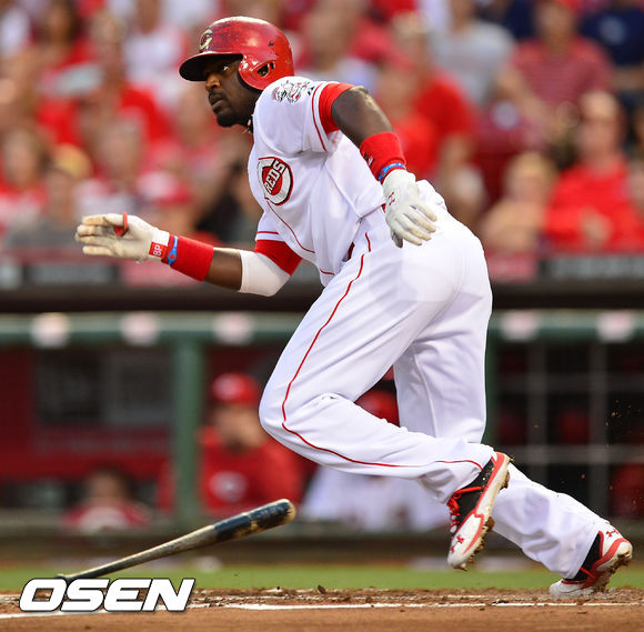 6일 (이하 한국시간) 미국 오하이오주 신시내티 그레이트 아메리칸 볼파크에서 열린 2013 메이저리그 신시내티 레즈와 세인트루이스 카디널스의 경기, 2회 2사 1,3루 신시내티 필립스가 선취 1타점 적시타를 날리고 있다.