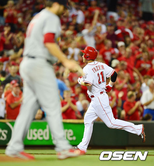6일 (이하 한국시간) 미국 오하이오주 신시내티 그레이트 아메리칸 볼파크에서 열린 2013 메이저리그 신시내티 레즈와 세인트루이스 카디널스의 경기, 3회말 신시내티 프레이저가 좌월 솔로홈런을 날린 후 그라운드를 돌고 있다.