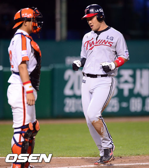 6일 오후 대전구장에서 열린 '2013 한국야쿠르트 세븐 프로야구' 한화 이글스와 LG트윈스의 경기, 2회초 1사 2루 LG 이병규의 안타때 2루 주자 정의윤이 한화 중견수 고동진의 실책을 틈타 득점을 올리고 있다.