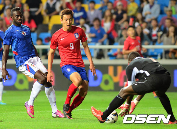 6일 오후 인천 축구전용경기장에서 열린 한국과 아이티의 친선 경기 전반 지동원이 슈팅 기회를 놓치고 있다.