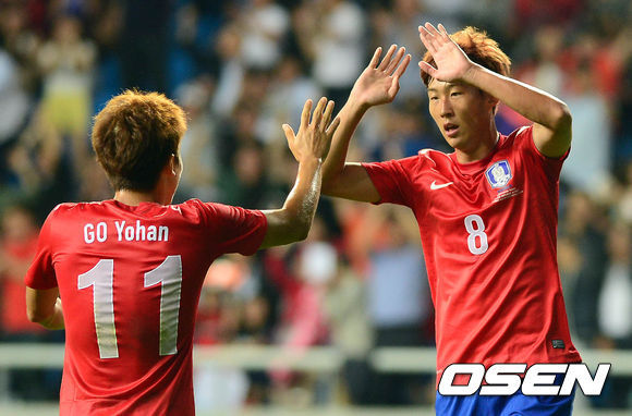 이날 경기서 최전방 원톱 스트라이커에 지동원을 기용한 홍 감독은 좌우 측면에 손흥민과 고요한(서울), 공격형 미드필더에 이근호를 배치해 지동원을 지원하도록 했다. 중원에는 이명주(포항)와 하대성(서울)이 자리를 잡았고, 포백라인에는 박주호(마인츠)와 홍정호(아우크스부르크), 김영권(광저우 에버그란데), 김창수(가시와 레이솔)로 구성됐다. 골키퍼 장갑은 김승규(울산)가 차지했다.