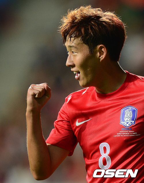 6일 오후 인천 축구전용경기장에서 열린 한국과 아이티의 친선 경기, 후반 한국 손흥민이 선제골에 이어 팀의 네번째 골을 성공시키고 기뻐하고 있다.