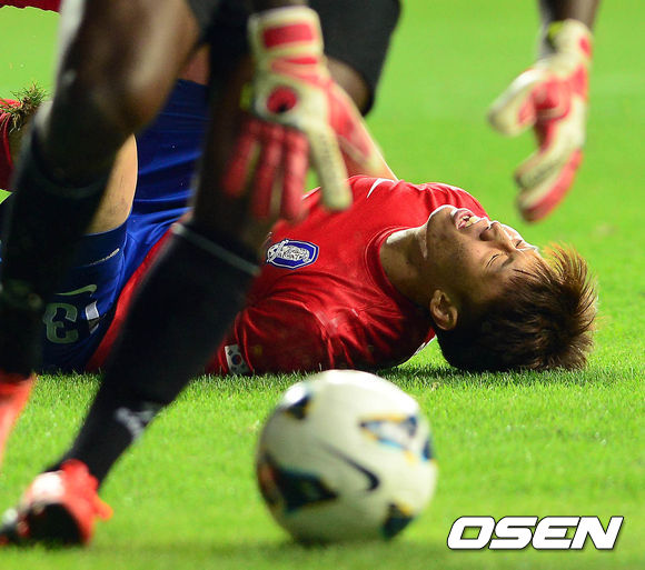 6일 오후 인천 축구전용경기장에서 열린 한국과 아이티의 친선 경기 후반 김보경이 문전에서 슈팅 기회를 놓친 후 아쉬워하고 있다.