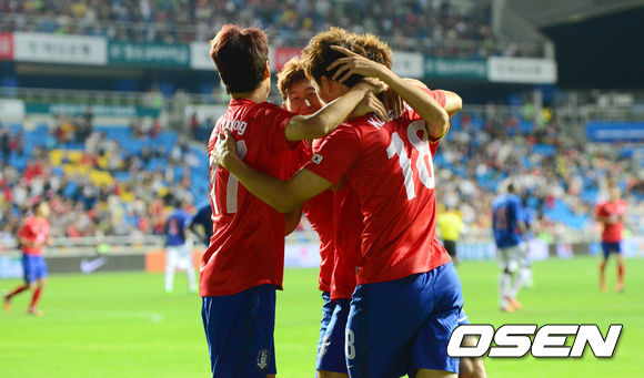 홍명보 감독이 지휘하는 축구대표팀은 6일 인천축구전용경기장서 열린 아이티와 친선경기서 4-1로 완승을 거뒀다. 홍명보 감독이 지휘봉을 잡은 뒤 4경기서 3무 1패로 부진하던 한국은 처음으로 승전보를 알리게 됐다.