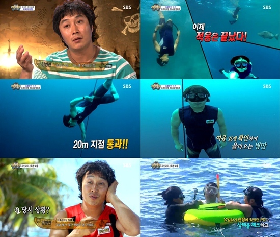 6일 오후 방송된 SBS 예능프로그램 '정글의 법칙 in 캐리비언'(이하 정글의 법칙)에서는 김병만이 프리다이빙에 도전하는 모습이 그려졌다.