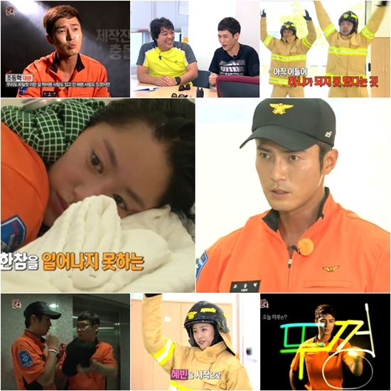 제일 먼저 소방서에 도착한 박기웅은 매니저에게 문자메시지를 보내다가, 전혜빈은 인사법 때문에 교관에게 지적받았다. 엄격한 분위기에 잔뜩 긴장한 멤버들은 긴장감을 늦추지 못하고 훈련에 들어갔다. 훈련뿐만 아니라 실수를 하면 얼차려까지 받아야했다. 엄격한 계급과 분위기는 마치 군대를 보는 듯 했다.