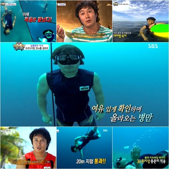 김병만은 스카이다이빙에 이어 20미터 넘기 프리다이빙에 도전했고, 그의 도전은 성공적이었다. 김병만은 가볍게 몸을 푼 후 22미터 지점에 도착하며 두 번째 극기과제를 성공적으로 마쳤다. 하지만 김병만의 도전은 끝이 없었다. 22미터 프리다이빙에 성공한 김병만은 계속해서 30미터에 도전했다.