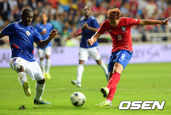 대한민국 축구대표팀은 6일 인천축구전용경기장서 열린 아이티와 친선경기서 4-1로 완승을 거뒀다. 홍명보 감독은 지휘봉을 잡은 뒤 5경기 만에 첫 승을 신고했다. 지난 4경기서 한 골에 그쳤던 골 가뭄도 단번에 해갈됐다.
