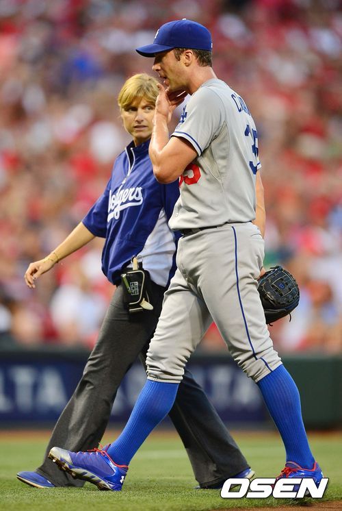 LA 다저스의 베테랑 선발 투수 크리스 카푸아노가 경기 도중 몸에 이상을 느껴 조기에 마운드를 내려갔다.