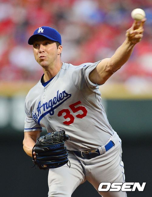 7일 (이하 한국시간) 미국 오하이오주 신시내티 그레이트 아메리칸 볼파크에서 열린 2013 메이저리그 신시내티 레즈와 LA 다저스의 경기에서 다저스 선발 카푸아노가 힘차게 공을 뿌리고 있다.