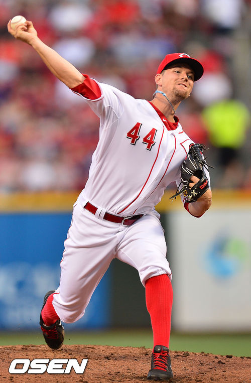 7일 (이하 한국시간) 미국 오하이오주 신시내티 그레이트 아메리칸 볼파크에서 열린 2013 메이저리그 신시내티 레즈와 LA 다저스의 경기에서 신시내티 선발 마이크 리크가 힘차게 공을 뿌리고 있다.
